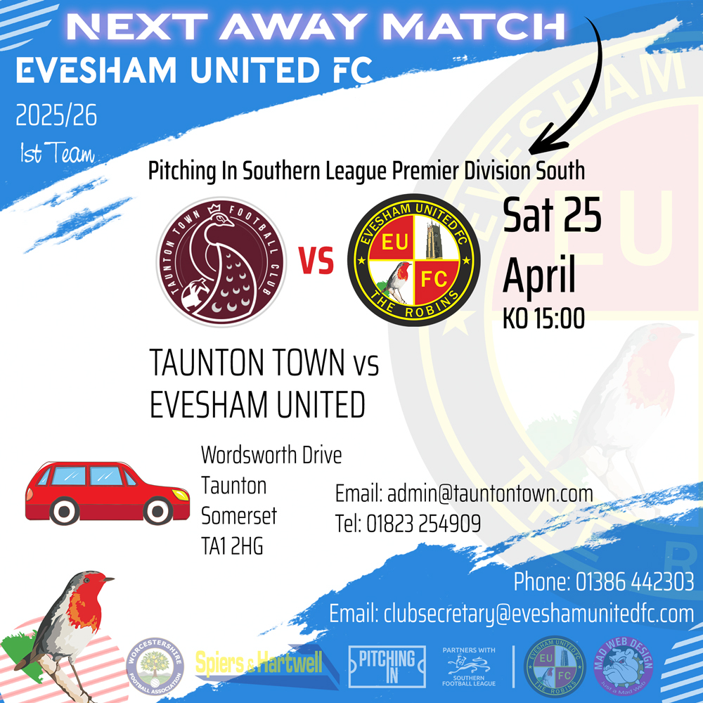 ROBINS STARTING X1 (vs Tavistock AFC): 1 Alex Harris, 4 Josh Barlow, 5 Toby Raison, 6 Michael O’Regan, 8 Reegan Messenger, 9 Levi Steele (65′ 7 Mekhai Bessasa-Grant), 10 Amer Awadh (c) (67′ 11 Alfie Dunn), 12 André Wright 76′, 14 Will Owens, 17 Aaron Heap (88′ 18 Jyrel Bojang), 20 Jordy N’Gathe