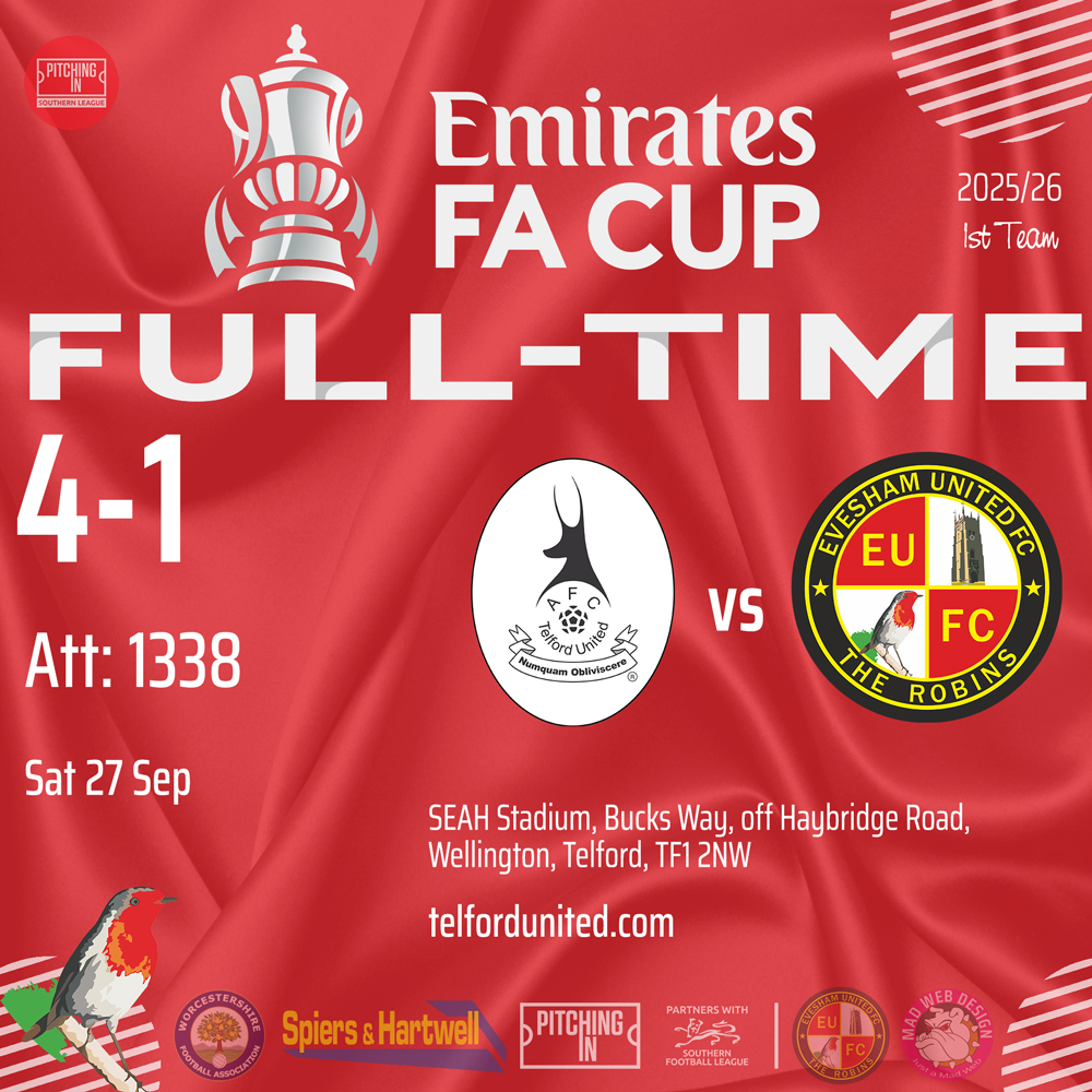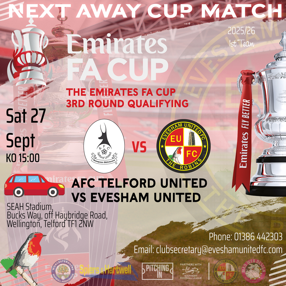 Evesham will compete in the FA Cup Third Qualifying Round on Saturday for the first time since the 2014/15 season. A.F.C. Telford United of the National League North will provide the opposition at the `6,300 capacity` SEAH Stadium.