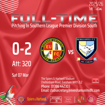 Evesham United played host to play-off hopefuls Berkhamsted on Saturday. Unfortunately for the Robins, the match finished in a 2-0 defeat, leaving them only three points above the relegation zone.