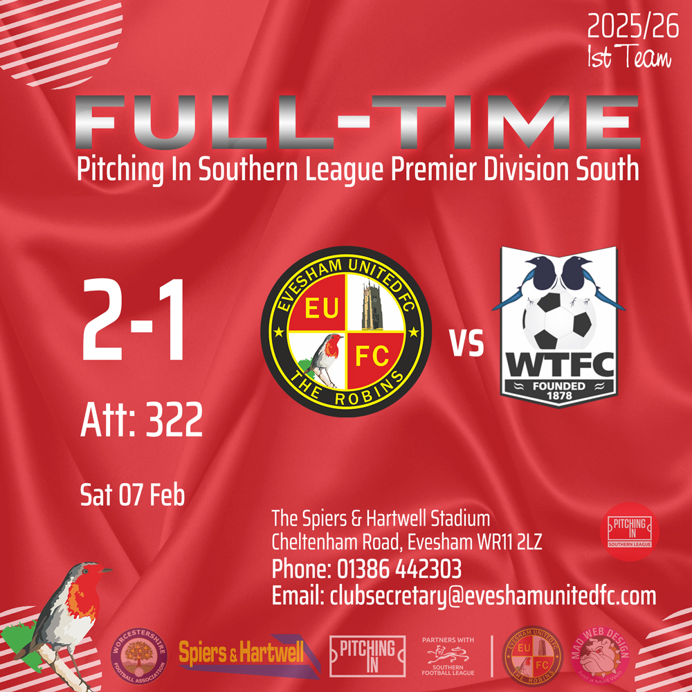 Evesham United 2-1 Wimborne Town Saturday 07th February 2026 Pitching In Southern League Premier South Match Report by Simon Purfield Evesham United continued their unbeaten run in 2026 with a determined 2-1 victory over Wimborne Town at the Spiers and Hartwell Stadium on Saturday. [...]